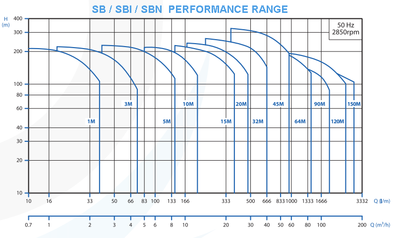 Unit pompa terdiri dari hidraulik yang dioptimalkan, berbagai jenis sambungan, selongsong luar, kepala pompa, dasar pompa, empat baut penahan, dan berbagai bagian lainnya. Basis pompa memiliki port hisap dan pelepasan pada level yang sama (in-line). Desain in-line ini memberikan desain yang lebih ringkas dan pemasangan yang lebih mudah. Semua pompa dilengkapi dengan segel poros mekanis dari jenis kartrid yang dapat dilepas. Pompa SB, SBI dan SBN tersedia dengan berbagai tahapan dan kapasitas untuk memberikan pelanggan pilihan model untuk banyak aplikasi.
