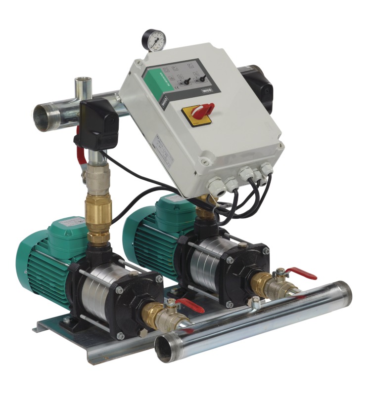 - Pumps: Two pumps of the MHIL 3 to MHIL 5 series switched in parallel; all pump components that come in contact with the fluid are made of stainless steel/cataphoretic-coated grey cast iron. KTW/WRAS approval for all components that come in contact with the fluid. More information on the pumps can be found in the “Pressure boosting” chapter.