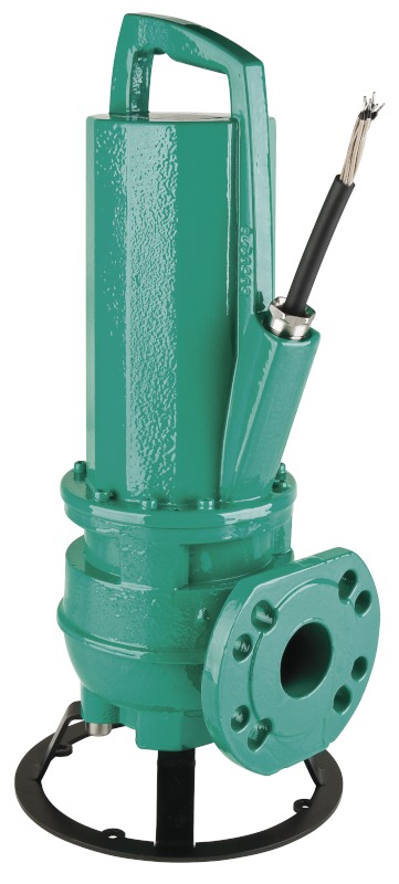 Submersible sewage pump as submersible monobloc unit for stationary and portable wet well installation in permanent operation.